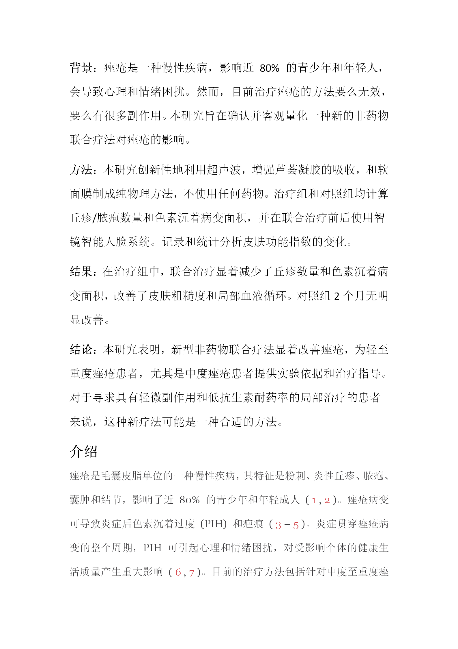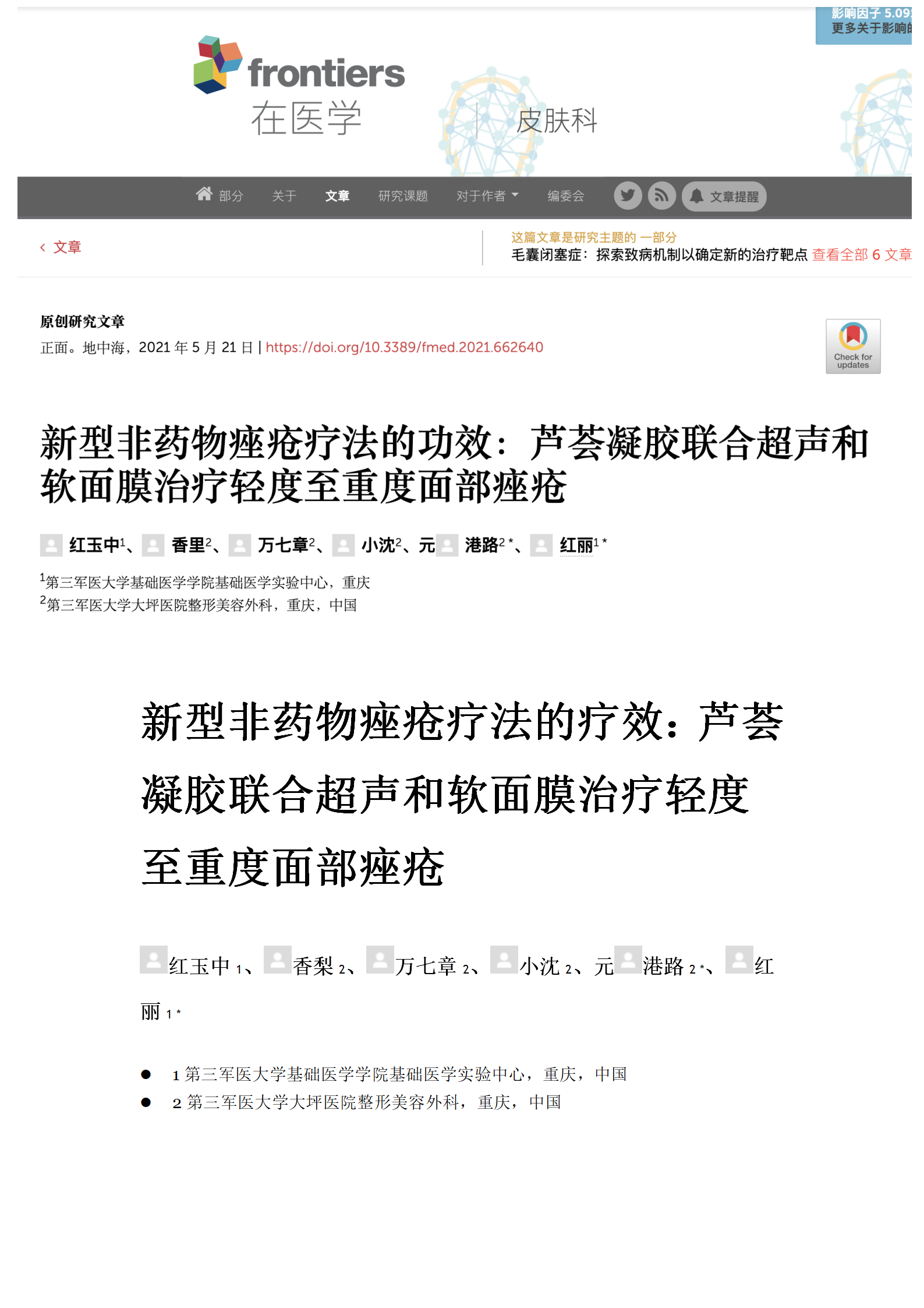 新型非藥物痤瘡療法的療效:蘆薈凝膠聯(lián)合超聲和軟面膜治療輕度至重度面部痤瘡