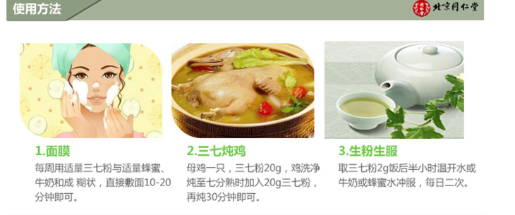 (1)、三七粉熟吃取1-2克,與150 ml雞湯攪勻食用??裳a血補氣。