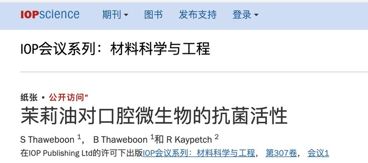 ncbi.nlm.nih.gov/pubmed/23157022Thaweboon S.(2018年)。茉莉油對口腔微生物的抗菌活性。DOI: