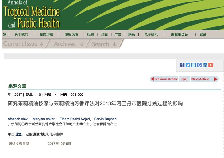 Alavi A等。(2017)。研究茉莉精油按摩與茉莉精油芳香療法對2013年阿巴丹市醫(yī)院分娩過程的影響。DOI :